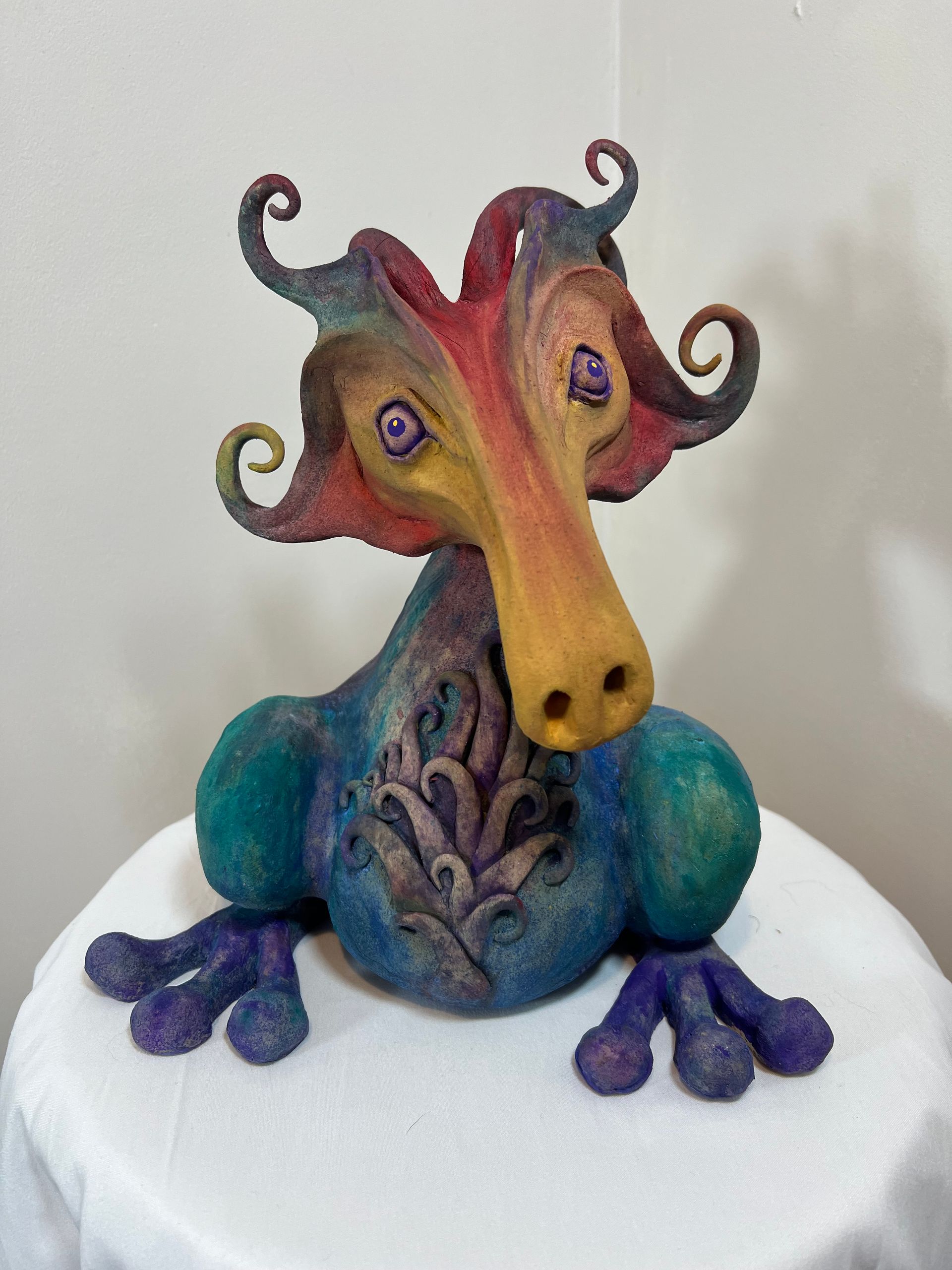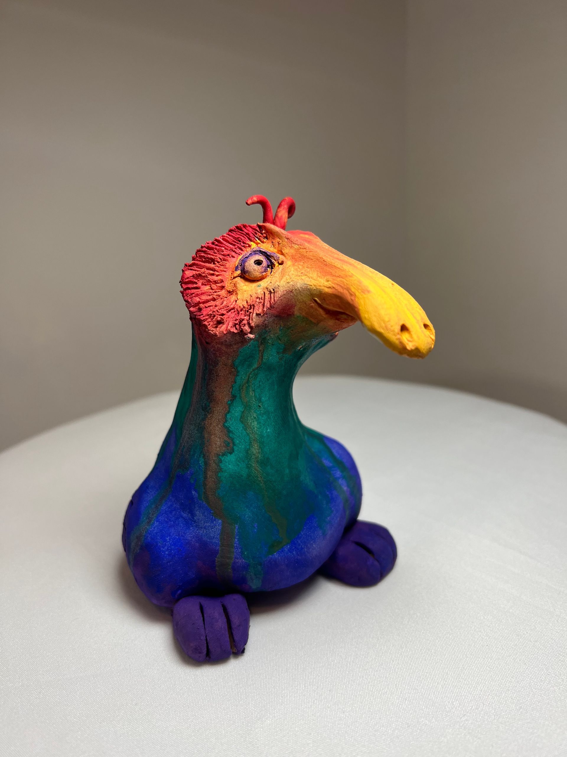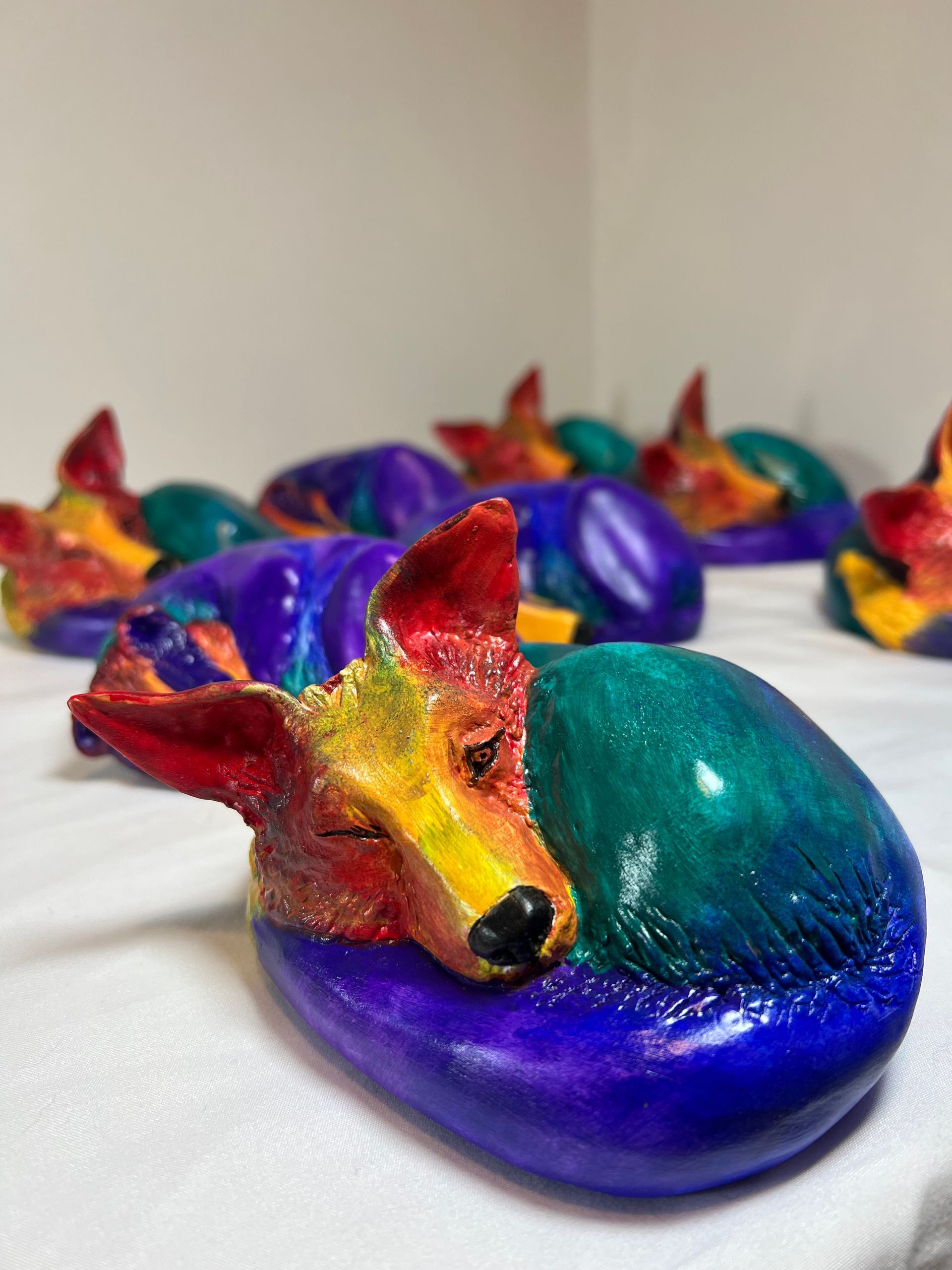 Each sculpture is a striking fusion of the fantastical and the familiar, where animal forms are reimagined through rich textures and bold, luminous colours. At the heart of her work is a powerful message: like animals, we too should live unapologetically, embracing our true nature and showing our true colours.