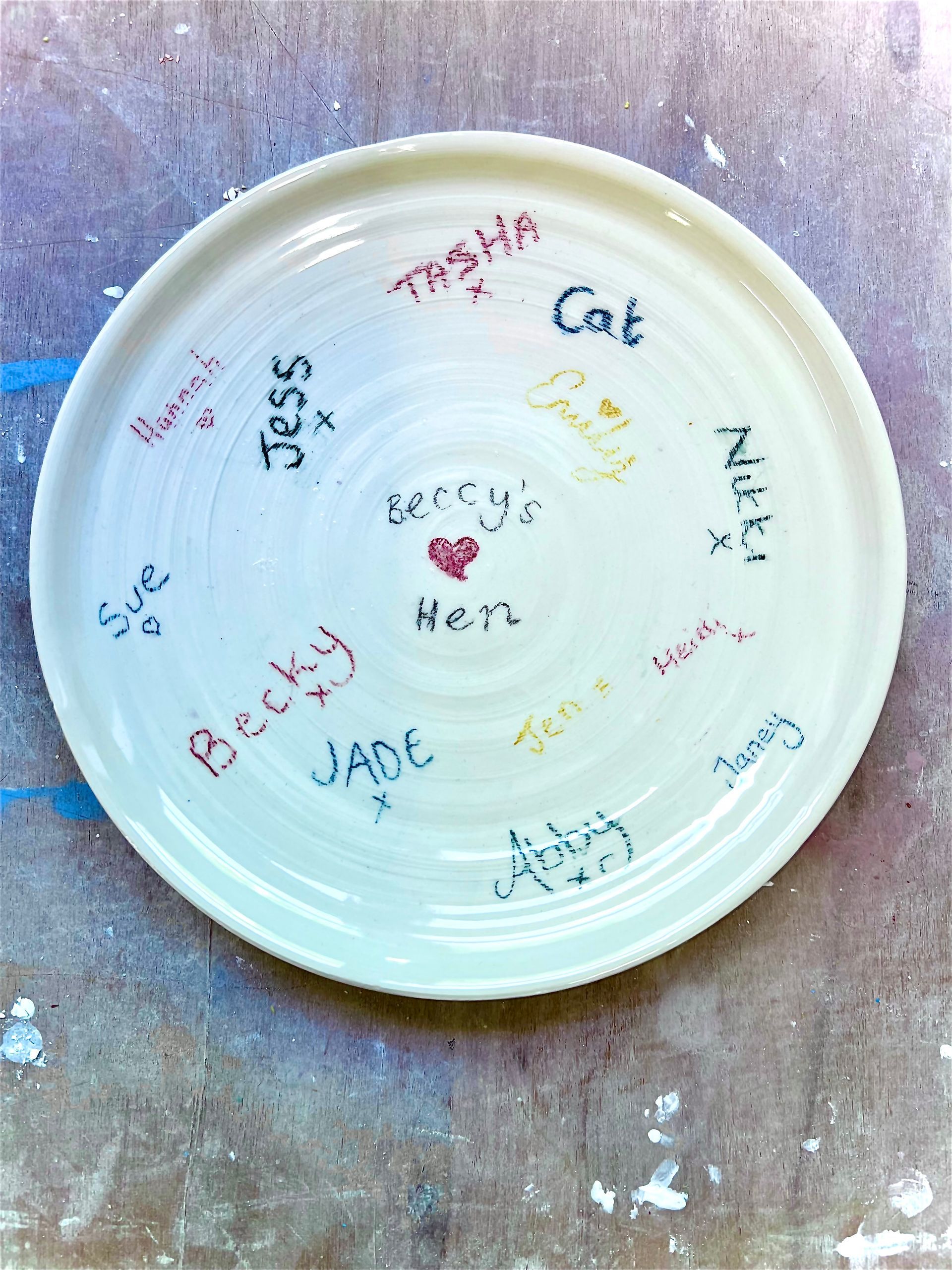 with 7 people and above you also get a hand thrown plate for everyone to sign as a keepsake for the party star. ( smaller parties can also request this at an additional £10 )