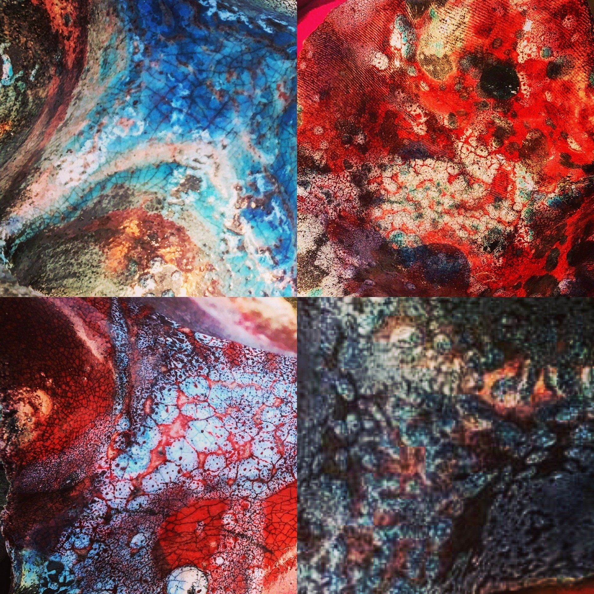 Some are deprived of air after ignition (called a reduction chamber) which starves the flames of oxygen, the fire looks for an alternative ignition which it finds in pulling out the oxides that are of a high content in raku glazes, white glazes are sprayed with water to produce a blackened crazed affect, with different combustible materials producing different effects and carbonising along with so many other firing techniques such as slip resist and Naked Raku (don't worry, you won't be asked to strip!) to experiment with it can become a very addictive process.